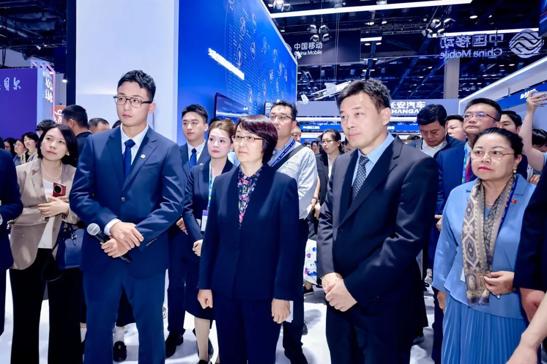 開幕式后,鐘志紅一行前往中國電信、中國移動、中國聯(lián)通、通用技術(shù)集團、中國廣電、中國鐵塔、華為等企業(yè)展臺,詳細了解6G、5G-A通感一體、人工智能大模型在空間數(shù)字化治理中的應(yīng)用、低空智聯(lián)網(wǎng)解決方案、衛(wèi)星互聯(lián)網(wǎng)融合應(yīng)用、自智網(wǎng)絡(luò)系統(tǒng)、智能機器人、無人機應(yīng)急通信裝備等前沿技術(shù)與融合創(chuàng)新成果。