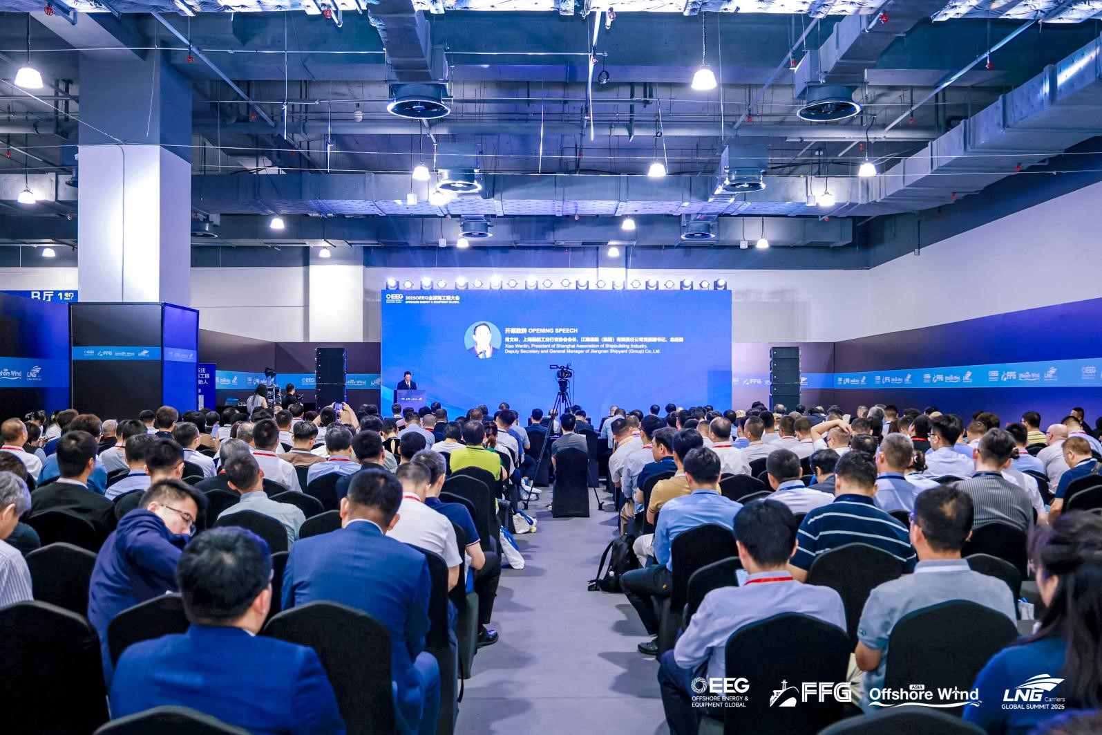 上海船舶工業行業協會會長,江南造船(集團)有限責任公司黨委副書記、總經理肖文林代表主辦方開場致辭;中國工程院院士周守為、林忠欽親臨現場發表院士報告,為海洋能源與工程裝備產業發展錨定方向;上海市長興島開發建設管理委員會黨組成員、專職副主任蔡瀟飛,上海市工業經濟聯合會會長管維鏞,滬東中華造船(集團)有限公司總經理翁紅兵,中國船舶集團中船海舟董事長朱煜,中國海油能源經濟研究院專家委員會委員楊云,巴西國家石油首席財務官Bernardo Castelloes,埃尼中國董事會主席Gianni Di Giovanni等政企代表悉數到場,共商海洋能源產業發展大計。?