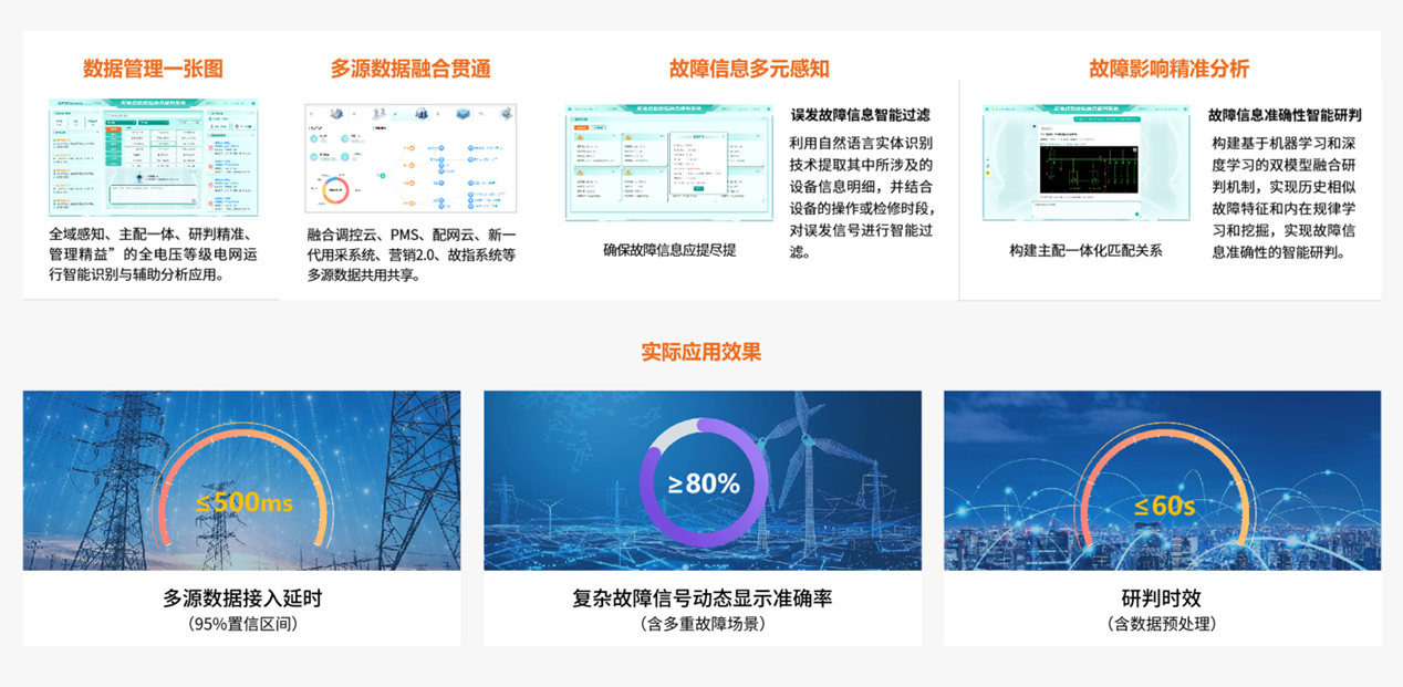 該系統(tǒng)深度融合配網(wǎng)多系統(tǒng)數(shù)據(jù)與AI大模型分析能力,實時接入主網(wǎng)調(diào)控、用采、故指、配自等多源異構(gòu)數(shù)據(jù),經(jīng)標(biāo)準(zhǔn)化處理與統(tǒng)一分析,全面感知電網(wǎng)運行狀態(tài)。借助AI大模型算力,故障點定位精度超80%,60秒內(nèi)可完成研判;還能基于結(jié)果智能生成復(fù)電路徑參考、檢修優(yōu)先級排序等處理建議,為運維人員提供決策依據(jù),推動配網(wǎng)故障處置從“被動響應(yīng)”轉(zhuǎn)向“主動決策”。
