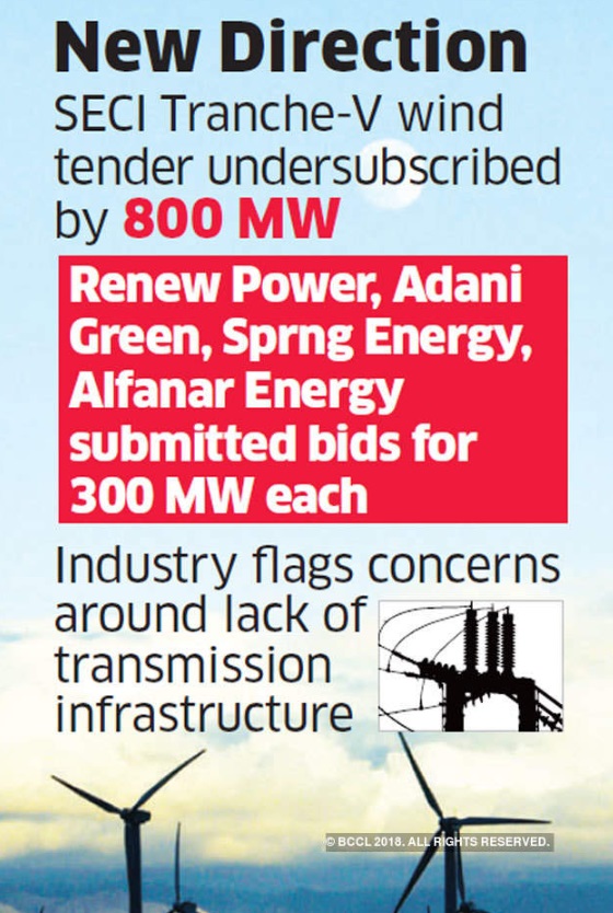 四個可再生能源開發商 - Renew Power,Adani Green Energy,Sprng Energy和Alfanar Energy -周二提交了300兆瓦容量的技術報價,占印度太陽能公司(SECI)總容量的1,200兆瓦(SECI))。行業觀察人士表示,缺乏應對措施不是因為對風電行業缺乏興趣,而是擔心是否有足夠的基礎設施可用于撤離通過這些項目產生的電力。