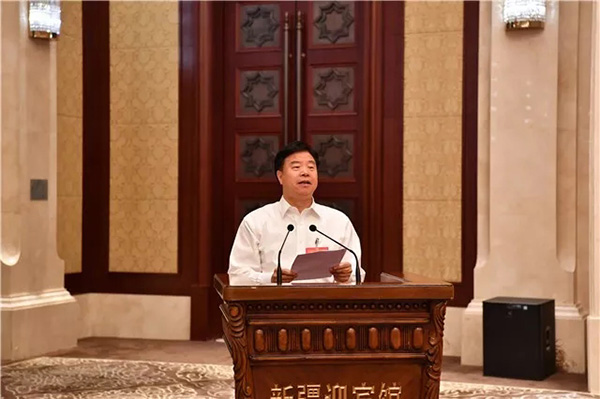 新疆自治區(qū)黨委書記陳全國,國務(wù)院國資委黨委書記郝鵬,新疆自治區(qū)黨委副書記、新疆生產(chǎn)建設(shè)兵團(tuán)黨委書記、政委孫金龍出席會(huì)議。