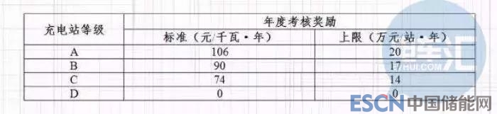 一是日??己霜?jiǎng)勵(lì),即每三個(gè)月對(duì)公用充電站的平均充電收費(fèi)標(biāo)準(zhǔn)、利用率等經(jīng)營(yíng)情況進(jìn)行考核評(píng)價(jià),引導(dǎo)企業(yè)通過優(yōu)化收費(fèi)標(biāo)準(zhǔn)、創(chuàng)新運(yùn)營(yíng)模式等方式提質(zhì)增效。根據(jù)考核情況,對(duì)考核評(píng)價(jià)最好的A級(jí)充電站給予每度電0.2元的獎(jiǎng)勵(lì),獎(jiǎng)勵(lì)上限為1500度/千瓦·年。