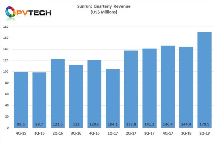 雖然季節(jié)性在部署和收入確認方面發(fā)揮了作用,但Sunrun的太陽能屋頂部署已從2016年第二季度的65MW增加到2018年第二季度的91MW。