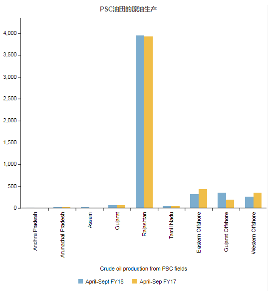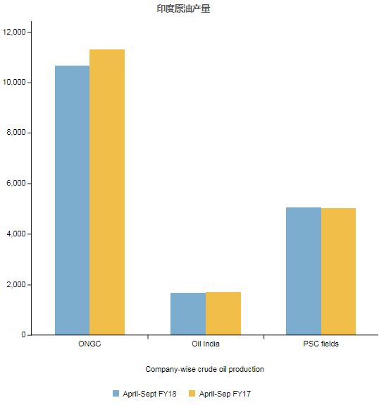 印度本財政年度前六個月(4月至9月)的累計原油產量下降3.42%至17,409.44 TMT,而去年同期產量為18025 TMT。