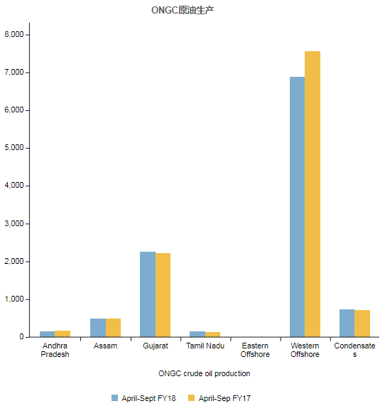 國家最大的石油和天然氣生產商,石油和天然氣公司(ONGC)的原油產量在9月份下降了7.21%至1,711.27 TMT,而去年同期的產量為1,844.25 TMT。