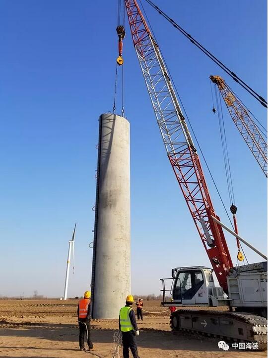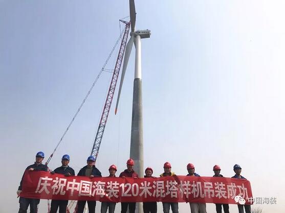 中國(guó)海裝120米輪轂高度鋼混塔筒樣機(jī)成功吊裝!