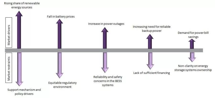 依據該報告,有以下幾個因素推動了全球電池儲能系統市場的發展:首先可再生能源份額逐步攀升,電池儲能系統技術應用成為必需。其次,電信和數據中心等具市場商機的領域,對改進性能和行之有效的解決方案具有強烈需求,因此對電池儲能需求越來越大。第三,除光伏發電以外,儲能有助于節省公共事業消費。第四,頻繁的電力削減也急需采用此項技術。最后,電池價格逐年下降,這也推動了此項技術在全球范圍的發展,這也是該行業迅速增長的主要原因。